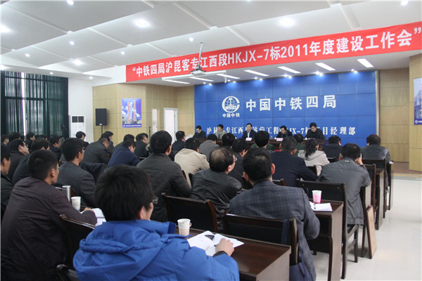 3月5日,中铁四局沪昆客专江西段经理部在对全标段进行了现场观摩检查后,组织召开2011年建设工作会,四局副总经理李学民明确要求围绕“两条主线一个重点”,确保项目产值、形象进度、安全、质量、环保和效益等各项指标的实现。四局副总工程师兼项目常务副经理高峰、四局工经部副部长王青、四局五公司总经理汪海旺以及各参建单位主要领导等参加了会议。