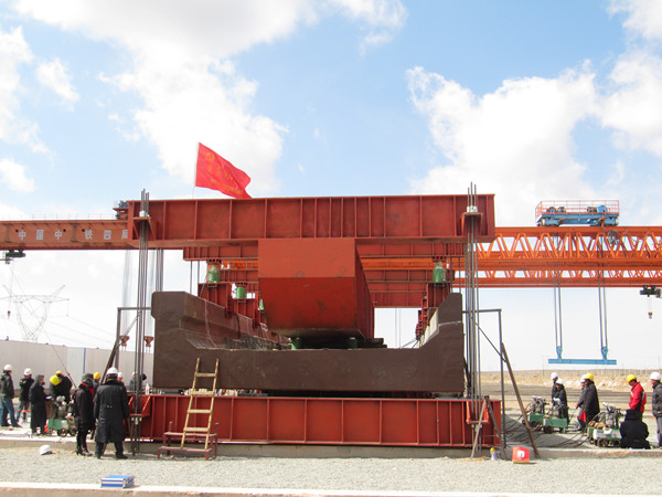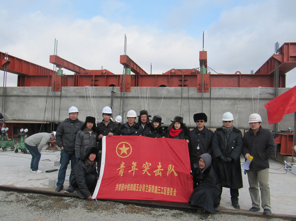 2010年12月初,兰新哈密梁场接到业主下达的预制16米槽型试验梁的任务,梁场成立相应的技术攻关小组,对模板设计、制作进场、原材料准备、配合比设计、预埋件加工等各项工作细化到人;多次聘请设计院、兰州交大有关专家前来授课,组织参战员工进行槽形梁试验施工工艺、工序技术培训;召开槽形梁技术分析会,解决技术难题。梁场党支部成立了槽形梁试验领导小组,并组建党员突击队和青年突击队分别进行了“党员承诺”、“团员承诺”活动,主动承担施工任务,克服了零下28度的严寒和因冬休导致的劳力匮乏等困难,从模板安装到混凝土浇筑,从梁体蒸养到张拉压浆作业,所有工序全部“自力更生”,于当年12月23日预制完成国内首片16米槽形梁。2011年3月初,梁场接到对槽形梁进行静载试验和破坏性试验,获取技术参数任务,梁场迅速动员,明确分工,在掀起全场32米箱梁大干的同时,确保槽形梁两项关键性试验任务的完成。