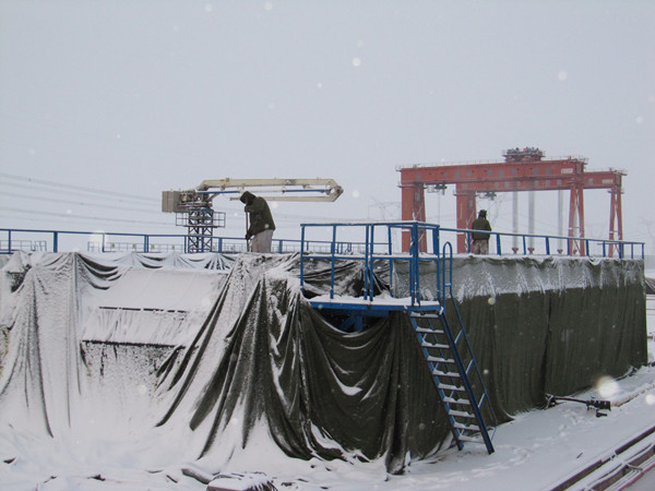 经过半个多月的奋战,克服严寒和十二、三级大风等困难,中铁四局五公司兰新哈密梁场分别于3月16日、19日完成槽形梁静载试验和破坏性试验,取得技术参数,为尚属国内首例风区桥梁设计提供了现场第一手资料。