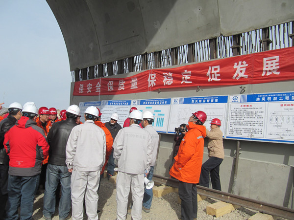 3月18日,铁道部质量安全专项检查组一行30余人冒着8级以上大风,抵达兰新铁路第二双线中铁四局兰新铁路二线项目部三工区沿线检查。在位于新疆百里风区中心地带的三工区防风明洞试验段认真听取了承建单位汇报的工程总体施工情况、质量安全控制保证措施等情况后,检查组一行仔细查看了现场文明施工设施、明洞直边墙外观、拼装成型的环形管片等质量,对防风明洞试验段的安全文明施工、质量控制等工作给予了充分肯定。