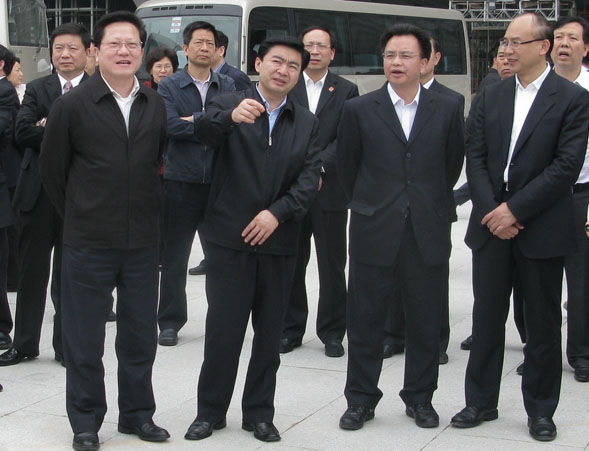 3月29日,广东省委常委、广州市委书记张广宁,市长万庆良率广州党政代表团到中铁四局五公司参建的深圳北站综合交通枢纽工程考察,广东省委常委、深圳市委书记王荣,市长许勤同行。