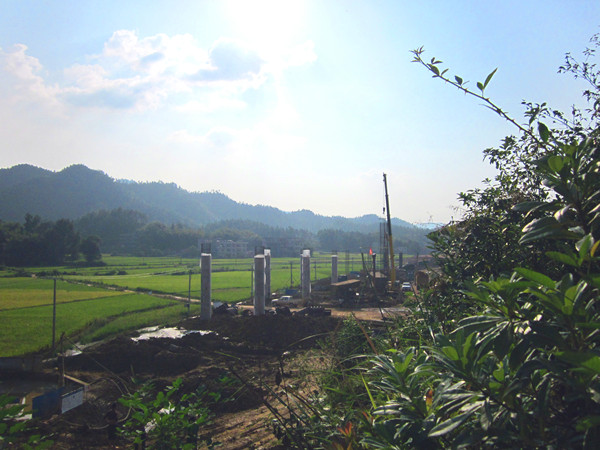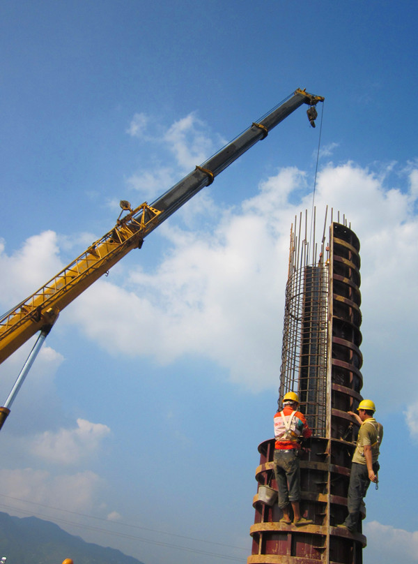 抚吉高速B7标管段有店前中桥、理家坊中桥、南山高架桥和陈家坊高架桥等四座桥梁,桥梁桩基共计160根,均为I类桩,采用冲击钻方式钻孔,吊车配合安装钢筋笼,混凝土由搅拌站集中供应,6台罐车全天候运输,导管法灌注水下混凝土。