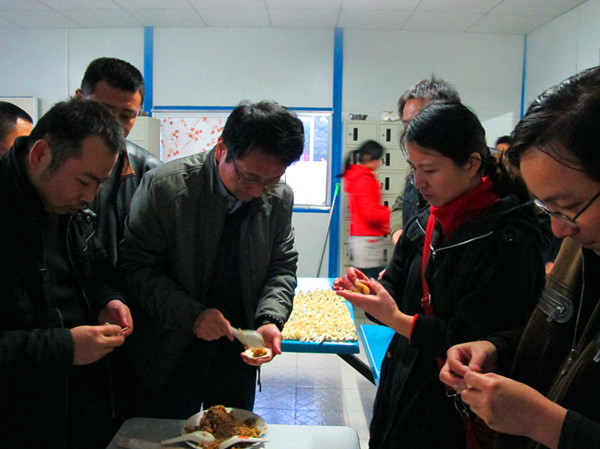 福州地铁有限公司领导在四局福州地铁02标经理部食堂,乐融融的参与项目员工包饺子活动。在认真听取了项目负责人关于春节期间的施工组织等相关工作安排后,地铁公司领导叮嘱项目做好防火、防盗等工作,确保员工们度过一个快乐祥和的春节。