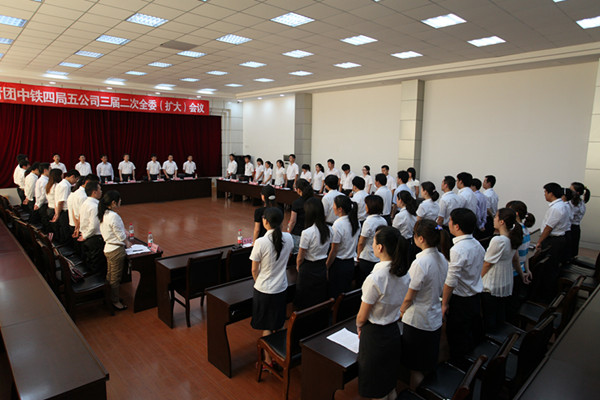 5月17日上午8点,在嘹亮的团歌声中,共青团中铁四局五公司三届二次全委(扩大)会如期在九江总部召开。五公司总经理汪海旺、纪委书记朱钢、工会主席李会兴、总工程师孙爱军、总会计师耿天宝等在家领导与会讲话,并为2011年度获得四局共青团系统先进集体和公司“优秀基层团组织”单位颁发奖牌。五公司团委书记覃仁财主持会议。共青团五公司三届委员会委员、专兼职团支部书记和应邀代表60余人参加了此次会议。