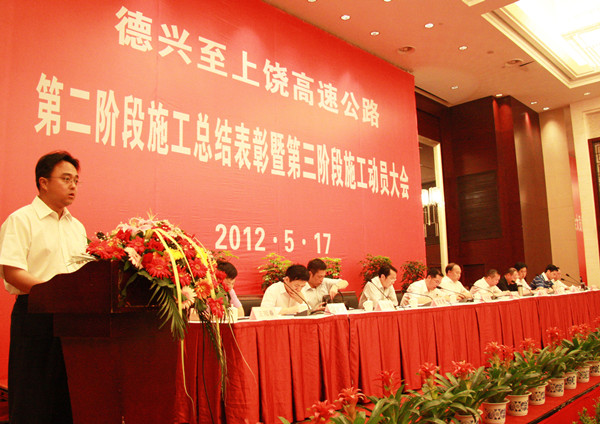 5月17日,江西省德(兴)上(饶)高速公路项目第二阶段施工总结表彰大会在上饶市隆重举行。省委常委、常务副省长凌成兴出席会议并讲话,省交通运输厅厅长许润龙、上饶市委书记董仚生、市委副书记、市长潘东军等出席。中铁四局五公司承建的德上A4、A8标人员周继红、梅魁和雒岚分别获评该线“优秀项目经理”和“优秀项目总工”,接受领导颁奖。