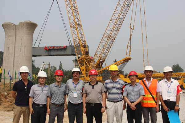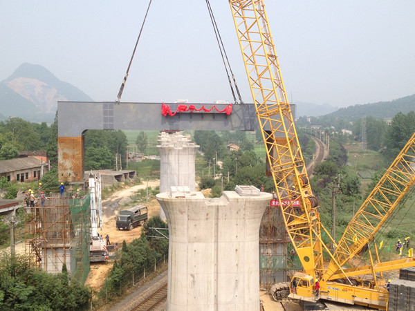 上跨既有铁路线施工,安全风险大,且大吨位钢梁吊装在沪昆客专江西段尚属首次,施工组织难度极大。为确保吊装万无一失,中铁四局沪昆客专江西段7标经理部参建员工克服高温酷暑难耐、铁路干线车行密集等不利因素,反复演算,并完成了钢盖梁翻转、试吊过程演练,收集到在设计旋转半径和吊重情况下的吊车工作能力、超起配重的选择、吊车转、吊速率、地基承载力、钢盖梁吊装的水平、垂直度、吊车机械性能及人机配合指挥等现场参数,积累了同类项目施工经验。