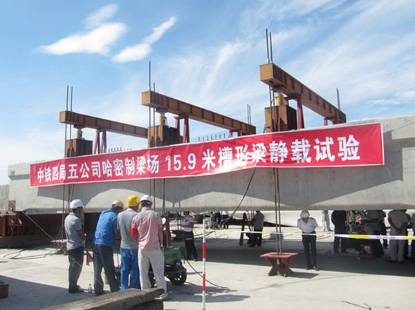 8月1日,中铁四局兰(州)新(疆)铁路第二双线三工区哈密制梁场生产的槽形梁顺利通过国家生产许可认证。该梁为时速200公里及以上铁路的后张法预应力混凝土简支梁,为兰新铁路百里风区防风设计的特殊梁型,在国内首次应用。