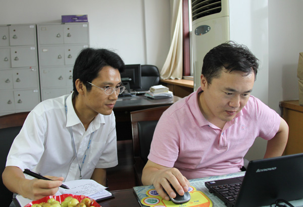 检查五公司总部内业资料(吴专/摄)