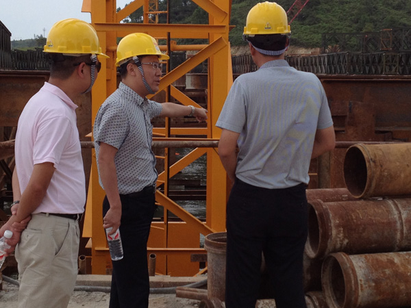 10月18日,中铁四局五公司总工程师孙爱军一行来到五公司承建南宁大桥项目后,立即进行现场勘察和图纸分析,对该项目前期工作进行了全面了解和指导,并就大桥锚碇基坑开挖、钢箱梁顶推施工、水中墩施工等技术难题和在场人员进行了探讨。