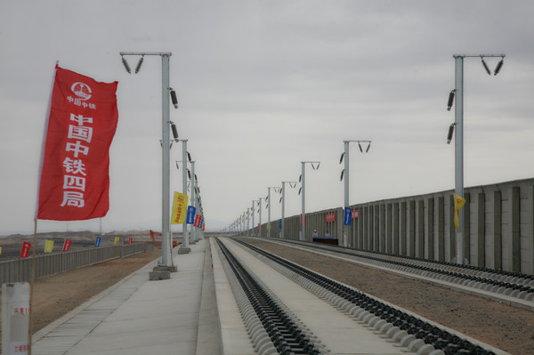 四局兰新铁路第二双线新疆段站前工程4标全长179.017km,于2010年3月1日正式开工,截止目前,该标段线下工程和轨枕预制已基本完工;支撑层完成完成170.9km,道床板完成144.3双线km;防风工程中的挡风墙除少数缺口外全部完工,防风屏加工与安装完成57%;防护栅栏预制完成21.1%,安装完成17%。