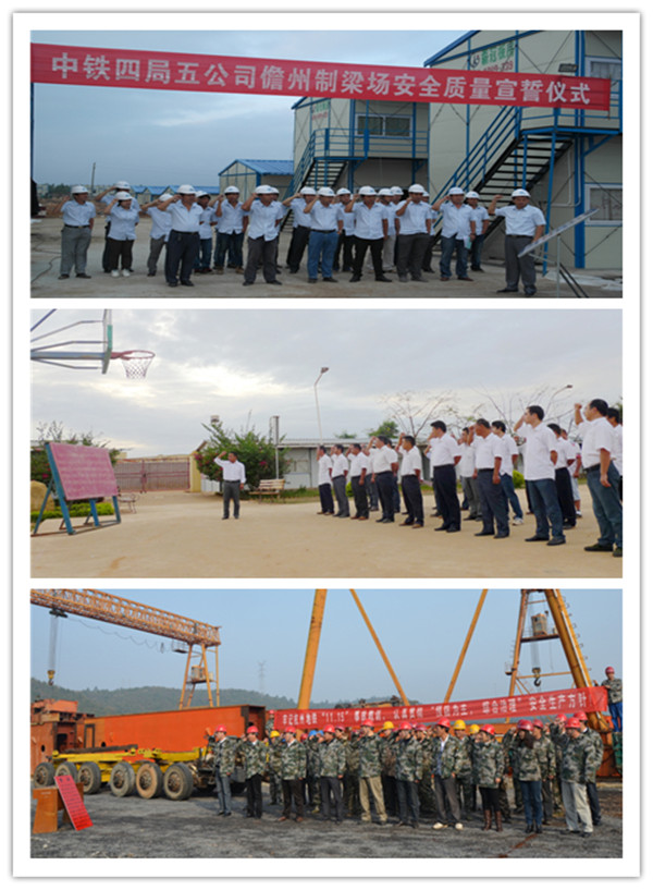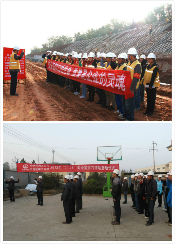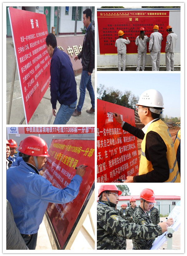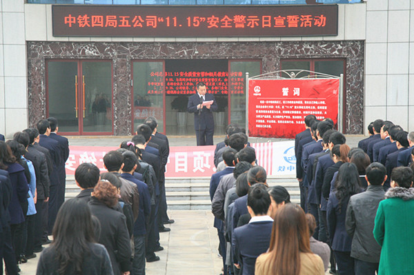 是日,五公司承建的市政、铁路、地铁、公路、BT工程等48个国内外在建项目同步在工地举行了宣誓仪式,并组织员工及外协队伍员工观看了《我身边的安全隐患》、杭州地铁“11.15”事故警示片,召开了“11.15”安全警示教育动员会和“我的安全质量职责”座谈会。同时,各项目以此为契机迅速开展了“大排查、大检查、大整顿”活动。