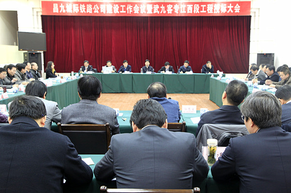 是日,昌(南昌)九(江)城际铁路公司建设工作会暨武九客专江西段施工、监理授标大会在五公司召开。南昌铁路局副局长、昌九城际铁路公司董事长、总经理康维,江西省发改委党组成员、省铁办主任、省铁路投资集团公司总经理熊燕斌,九江市委副书记、市政府代市长钟志生,南昌铁路运输检察分院党组书记、检察长丁高保等领导与会并讲话。中铁四局总经理许宝成等施工单位代表作表态发言。昌九城际铁路公司及相关设计、施工、监理和图审咨询单位代表150余人与会。