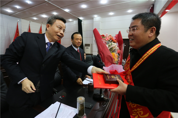 汪海旺为年公司2014年度优秀项目经理颁奖