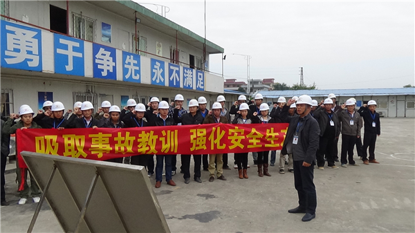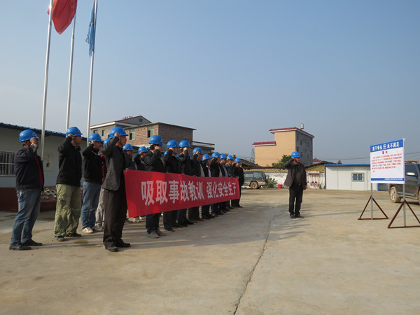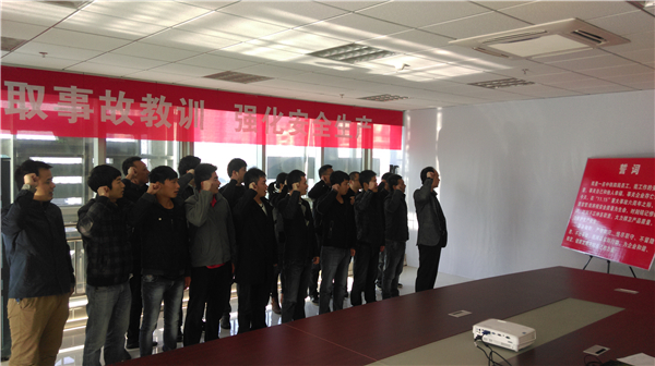11月14日8时40分,中铁四局五公司第六个“11o15”安全警示日教育活动按期举行,五公司董事长、党委书记李辉,总经理汪海旺以及在家班子成员、九江总部200余名干部员工庄严宣誓:“我将视安全质量为生命,时刻铭记惨痛教训,时刻不忘神圣职责,大力捍卫产品质量,大力维护生产安全。坚决做到:严守规范、恪尽职守、不留隐患、不出事故。我将以实际行动,为企业和谐、稳定、健康发展贡献自己的力量!”