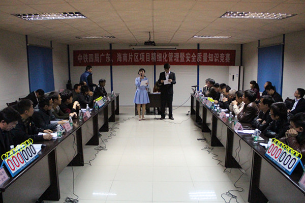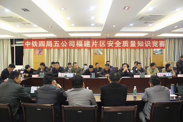 为积极响应局11.15安全质量警示教育活动和精细化管理要求,全面普及广大职工的安全知识,强化安全文化教育,大力营造安全文化氛围,五公司对此次片区安全质量竞赛初赛活动进行了详细地策划和现场布置,总部安质部门更是派员到各片区策划、指导活动开展。在竞赛题型上,设置了必答、抢答和风险等三种题型,题型知识涵盖了项目施工安全生产各个领域,题目灵活,重点突出,面广意深,过程中还设有观众有奖回答,活跃了现场氛围,增加了全员参与积极性。同时,为了充分体现竞赛“公开、公平、公正”的原则,在比赛开始之前各队各队抽签决定了自己的台号,同时在比赛过程中由各队自主选题进行答题。比赛中,各片区参赛队员准备充分,选手精神饱满,互不示弱,大家你追我赶,拼抢激烈,比分交替上升,高潮迭起,扣人心弦,多个片区还进入了加时赛。观众答题更是欢声笑语,掌声阵阵,精彩不断。最终,经过各片区主办单位精心的组织和各参赛项目代表队的认真答题,武汉咸宁西高速1标、瑞九城际铁路三分部、海西东方梁场、京台高速A6标、沈阳地铁十号线14-15标和南宁英华大桥等六个项目分别夺得各自片区小组赛冠军,为各片区初赛划上了圆满的句号。