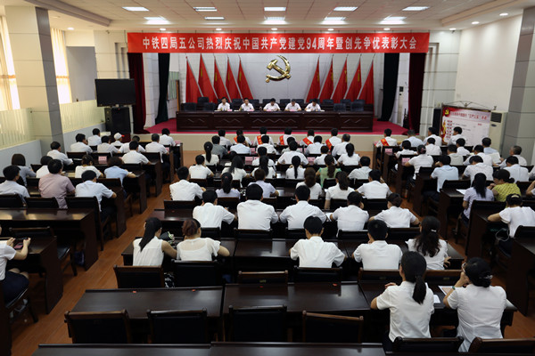 6月30日,中铁四局五公司庆祝中国共产党成立94周年暨创先争优表彰大会在九江召开。五公司董事长、党委书记李辉、总经理汪海旺等在家领导出席会议,九江片区基层单位党组织代表、十大“明星党员”、离退休党员代表、总部党员和入党积极分子等130余人参加了大会。五公司纪委书记卢志刚主持会议。