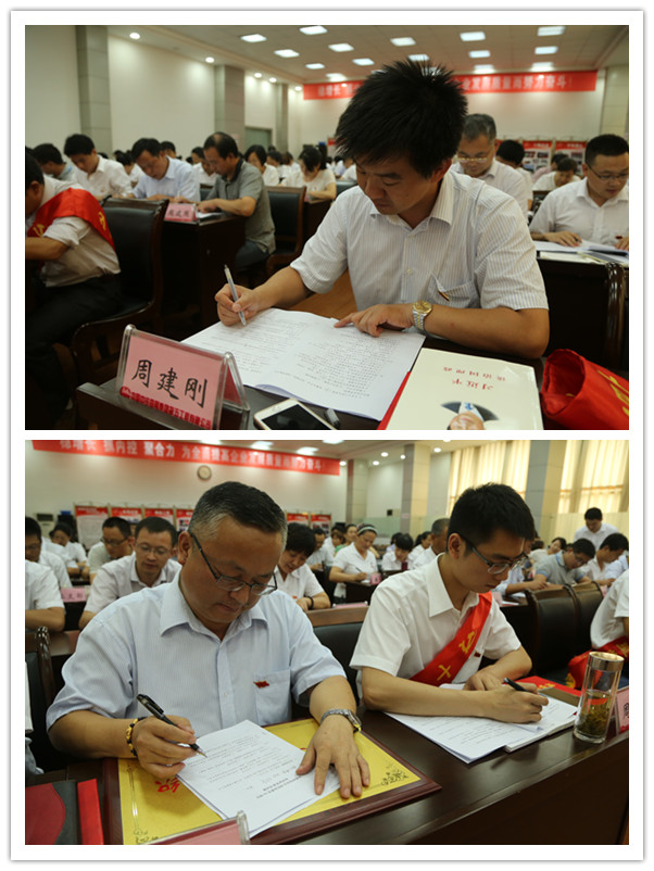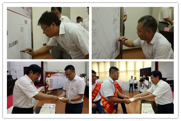 会上,公司领导班子成员、“三总师”副职、各部门负责人在党员领导干部践行“三严三实”主题承诺栏中签字并领取了党风廉政建设知识读本,共同重温了入党誓词。会后,全体与会人员还参与了纪念建党94周年党的知识答题考试。