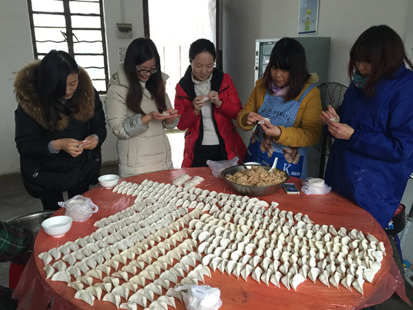 铜万经理部包饺子活动(冯俊俊/摄)