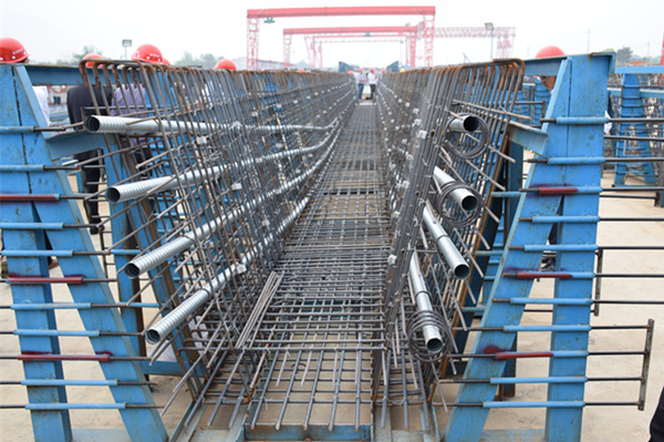 钢筋定位胎具绑扎(张召/摄)