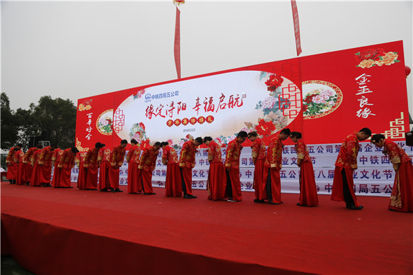 据了解,近年来,五公司高度重视传统文化的普及教育,积极开展企业文化节、国学讲座、道德讲堂,引导员工树立正确的世界观、人生观、价值观和幸福观。通过实现大学生五年帮扶计划,开展七大系统培训、青工技能大赛、导师带徒、青工夏令营、大学生回访、员工家访、“缘来是你”交友网站、区域内联谊等活动,多渠道为公司1500余名青年员工搭建成长成才和婚恋交友平台,有效稳定了青年人才队伍。此外,通过举办此次中式集体婚礼,进一步倡导青年人传承文明、追求幸福,营造移风易俗、健康向上的文明风,也对新婚夫妇具有十分重要的纪念意义。目前,公司已有19对新人通过该公司组织集体婚礼形式喜结连理。