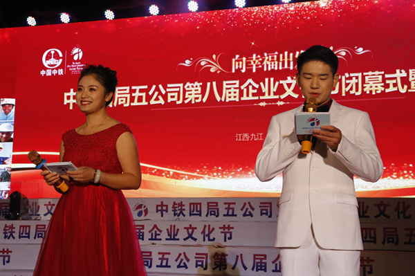 11月25日,中铁四局五公司第八届企业文化节胜利闭幕。局工会副主席孙明华,局团委书记潘磊,局党委宣传部、企业文化部副部长汪德义,九江市文明办副主任易本钰,局工会生产保障部部长林前应邀出席闭幕式。五公司党委书记、执行董事卢志刚,纪委书记王君锋,副总经理兼工会主席王闽建等在家领导、公司总部员工、九江片区单位员工、离退休员工及家属共300余人出席了闭幕式。王君锋主持仪式。