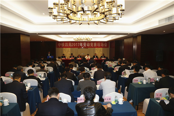 3月6日,中铁四局2017年上半年“单位夺金杯 重点工程夺红旗”劳动竞赛现场会在广州花都召开。四局工会主席、副总经理李朋谦,副总经理刘勃,总经理助理汪海旺,工管中心、安质部、技术中心、试验检测中心、各片区管控组等相关部门负责人,以及局各生产型子分公司工会主席、分管生产副总经理、工程管理、安质、技术口负责人共110余人参加了现场会。局工会副主席孙明华主持会议。会议号召各单位认真贯彻落实会议精神,安全、优质、高效地完成局2017年的发展目标,撸起袖子加油干,以更加优异的成绩向党的十九大献礼!