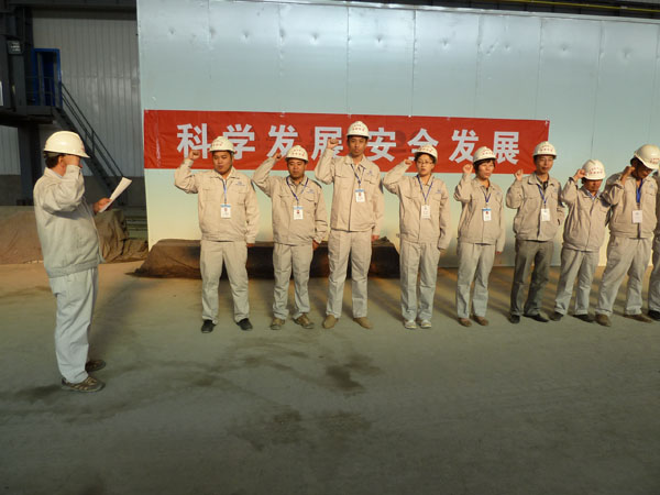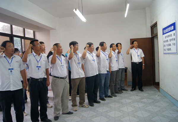 仪式上,李会兴带领全员进行了企业安全质量宣誓,并在“安全发展 科学发展”的安全生产月主题横幅上签名。
