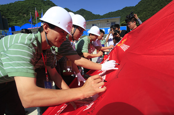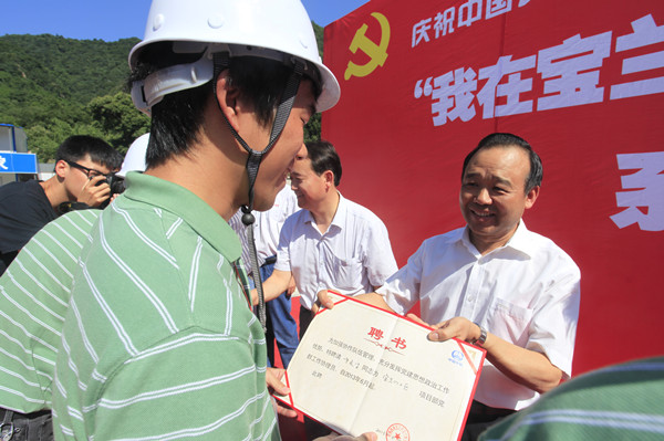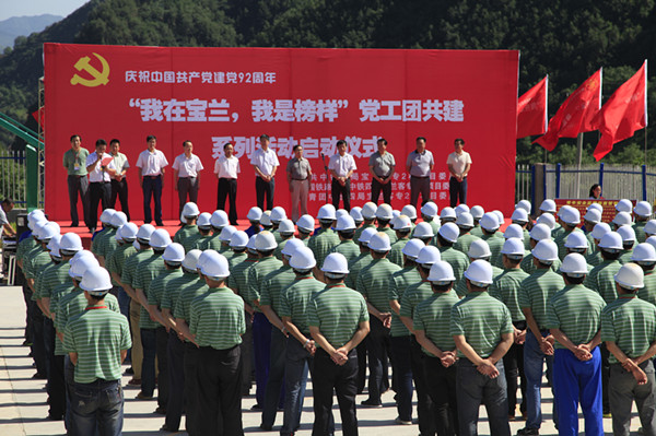 6月27日,一场由中铁四局承办、主题为“我在宝兰 我是榜样”的党工团共建系列活动在宝(鸡)兰(州)客专2标启动,10支党员突击队和青年突击队挥舞授旗,承诺安全优质绿色文明建设宝兰客专工程。