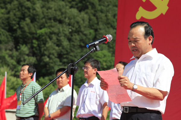 五公司副总经理兼宝兰客专2标项目书记、经理钱枞雄宣读活动文件(张召/摄)