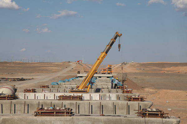 兰新铁路第二双线大桥工程一景(张召/摄)