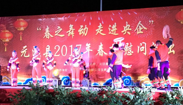 1月17日晚,由元江县县委、元江县政府主办的“春之舞动 走进央企”春节慰问演出大型文艺晚会,在中铁四局玉(溪)至磨(憨)铁路5标一分部隆重上演,来自中铁四局、五局、十七局、隧道局及元江县“四套”班子领导与职工200余人观看了演出。