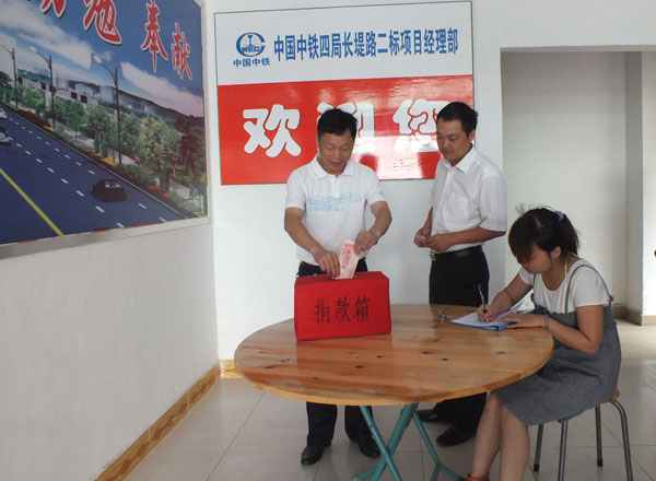 武汉轨道四号线二期十标经理部踊跃捐款(齐新成/摄)