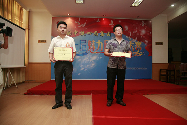 此次“魅力团支书”评选活动共吸引了来自中铁四局各子分公司的16名在岗专兼职团支部书记参赛,活动分为笔试测验、风采展示、活动策划,综合测试等四个阶段进行集中评选,对参赛团支书的党团知识及企业管理知识、共青团业务和组织能力、才艺设计能力进行了检验。在支部活动设计展示环节,选手们运用DV、微电影等新媒体,在15分钟内将所属支部的基本情况、品牌活动、党团共建、一线风采等内容逐一的展示出来。在综合能力测试环节,参赛选手分组对抗,通过描述竞猜、趣味运动等具体活动展示自身的分析能力、承受能力、反应能力、协调能力和记忆能力,以此挖掘工作能力突出的团支部书记和充满凝聚力的团支部。在风采展示环节,选手们以歌舞、小品、魔术等多种形式展现了基层团干部的多才多艺,同时考察了选手的组织协调能力,现场气氛热烈欢快。比赛中,五公司参赛选手葛立思全力以赴,凭借扎实的基本功和充分的准备,博得了阵阵掌声,并最终经过两天的激烈角逐,获得了第二名的好成绩,展示了五公司团员青年的风采。
