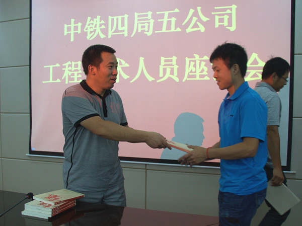 8月16日,中铁四局五公司首届工程技术人员夏令营活动之座谈会在机关总部召开。五公司总工程师孙爱军及相关业务部门负责人参加了此次座谈。会上,工程技术人员敞开心扉,就各自专业及生活中遇到的困惑发起提问,与会领导结合公司规章制度、施工工艺规范、工作阅历深入浅出地作了细致解答。孙爱军在会上寄语工程技术人员:一是要学会自我判断,学会反思总结,及时调整心态,以最佳状态工作;二是要持续提高综合能力,抓住机遇,勤学苦练,争做各专业领域排头兵;三是学会调整工作方法,灵活运用知识,将工作简单化,多思考,勤总结,敢于做“胆大而心细”的技术人员;四是要学会与项目领导沟通,学会承受各方压力,明确职业规划,早日成为企业的栋梁之才。会末,孙爱军为与会青年发放了《我和青春有个约定》一书。