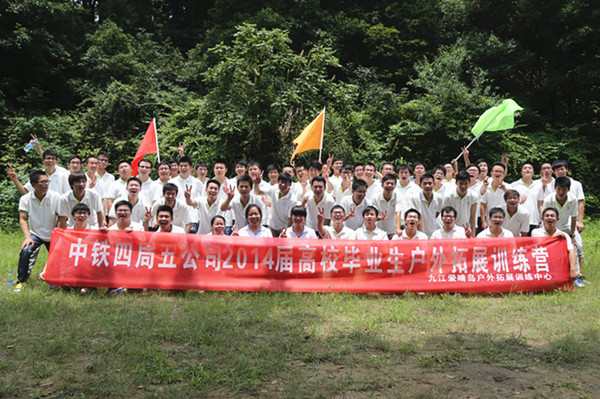 7月12日,中铁四局五公司2014届高校毕业生岗前培训走进九江爱情岛户外拓展训练基地,新加盟大学生在该公司团委组织下,参与了以“放飞梦想,扬帆起航”为主题的户外拓展训练活动,提升了大学生们的团结、分工、协作意识和能力。