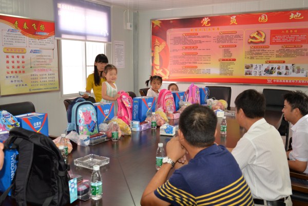 郑(州)万(州)高铁白河梁场为了给“小候鸟”们送行,在梁场小会议室举办了一场特别温馨的送行“宴”,为“小候鸟”们购买了书包、学习用品,并鼓励他们要好好读书,健康成长。此外,暑假期间“小候鸟”走上工地为工人师傅送饮料、擦拭汗水。(欧超 张善华)