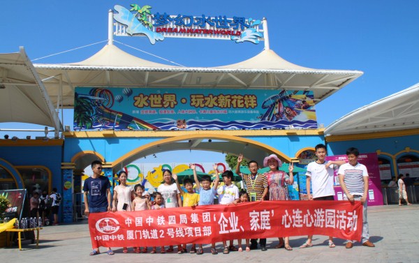厦门轨道2号线3标党委、工会组织来探亲的员工及家属14人,来到附近的观音山梦幻水上乐园,开展“企业·家庭”心连心游园活动,同时给探亲家伙书配置探亲房、桌椅、衣柜、空调等设施,并给小朋友购买书包、玩具等礼物,丰富他们的暑期生活。(刘建明)