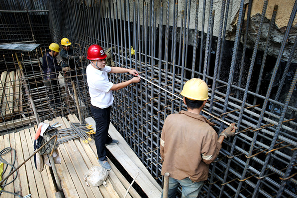 时间因忙碌而匆匆。2013年11月,40多米基坑开挖见底进入主体结构施工后,杨杰更加忙碌了。项目上为值守配备的军大衣,杨杰穿了不到一月,衣服的颜色便与农民工兄弟的无异。在一次因检查钢筋绑扎中,太专注于工作的杨杰不小心大衣被刺了个小洞,一时间基坑里棉絮飘舞,与基坑外的大雪纷飞竟“相映成趣”。